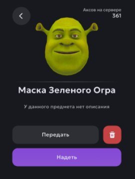 ⭐️аксессуар Маска Зеленого Огра / 361 шт. на сервере⭐️