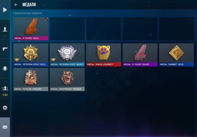 • Эксклюзивный медали: 4years gold and 4years silver, gambit gold, kitsune dreams bronze, а так же nightmare bronze.