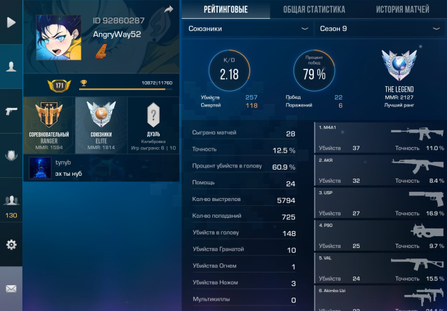 Звание: LegendКраткое описание: 💎АККАУНТ 4 years медали. 9-10 сезон легенды❤️