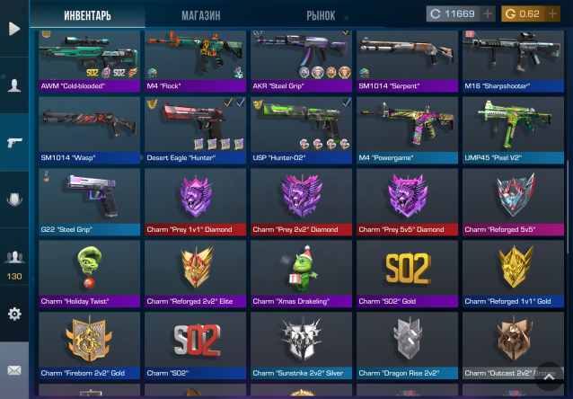 • Запас внутриигровой валюты: 11639 coin; 0.62 Gold