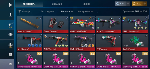 Butterfly Legacy, Gloves Templar, AWM Hohei Taisho, много red/pink скинов, 200+ предметов.