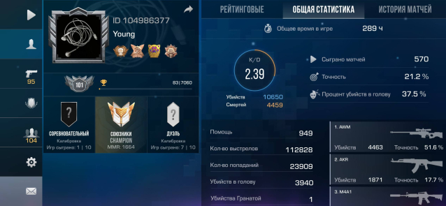 Подробное описание: 101 уровень, K/D 2.39, Champion.
