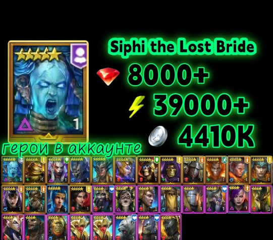 ♦ ПОЛНЫЙ ДОСТУП ♦ Siphi the Lost Bride ♦ 8000+ Рубинов ♦ 39000+ Сила ♦ СМОТРИТЕ ОПИСАНИЕ ♦♦ Эпических героев: 20