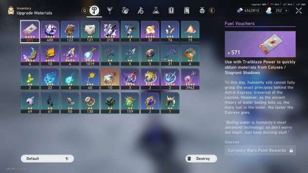 На аккаунте есть много не закрытых ивентов, много смолы, есть ресы для прокачки