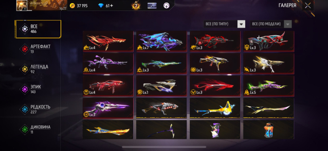 7️⃣ 486 скина на оружие.