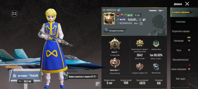 Курапика, рюкзак фараон, 33 мифика, золотая голова, Продажа, 64 уровень, Ранг: Золото, 30+ мифик скинов, 10+ прокачиваемых оружий, 1-4 килл чатов, Нет