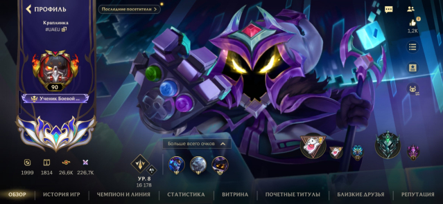 Подробное описание: Продам личный акк. На аккаунте имеются более сотни скинов, из которых 4 престижные, 20 легендарных и 69 эпических. Активно играл с дня релиза, но интерес к игре пропал, поэтому продаю. МИД и БОТ на 7-8 уровнях. Хорошая статистика на аккаунте, в ранговых вр 50+%. Имеются олдовые скины с первых БП. Более подробная инфа по скинам на скринах. Отвечу на ваши вопросы, возможен торг