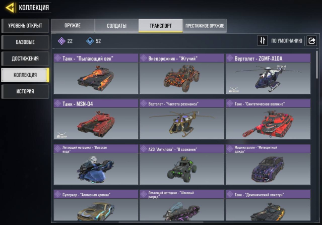 ✅️ ТРАНСПОРТ: 22 ЭПИК, 52 РЕДКИЙ🚗