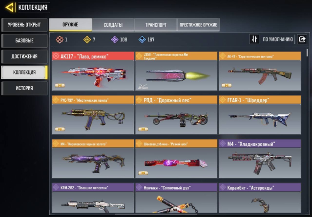 ✅️ ОРУЖИЕ: 1 МИФИК, 7 ЛЕГА, 108 ЭПИК, 167 РЕДКИЙ 🔫