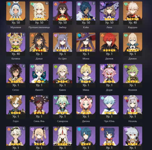 Краткое описание: LV5085[EU]AR 52 //пять звезд*7[Муалани+Казуха+Жан+Дилук+Мона+Кекинг+Дехья]+Эксклюзивное оружие*2