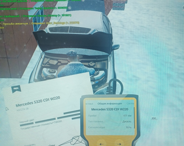 Подробное описание: Баланс: 50к / Авто: Мерседес w220 (Госс 700к) — 1 Стейдж — Установленная тонировка за 450к — Установленная сигнализация за 50к — установленные диски от БМВ за 200к — Установленные все обвесы за 120к — Установленный самбуфер за 50к — пробег 500 / Машина покупалась с Салона.