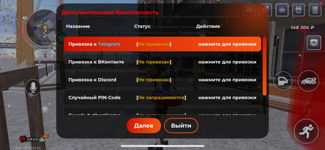 – ввод команды /time в чате (для подтверждения времени входа).
