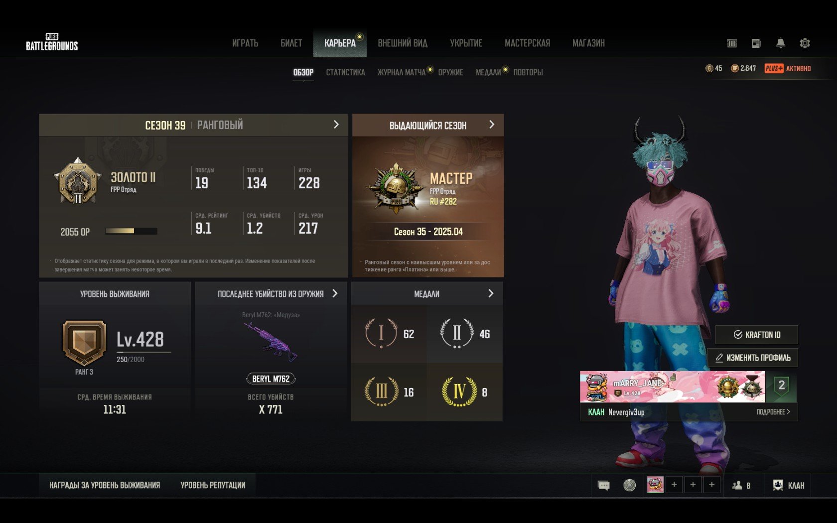 Подробное описание: ✅Продаю основной аккаунт с жирным пабгом. Очень много скинов, прогрессив ганы (beryle medusa 10lvl, aug minotaur 4lvl), PUBG +✅