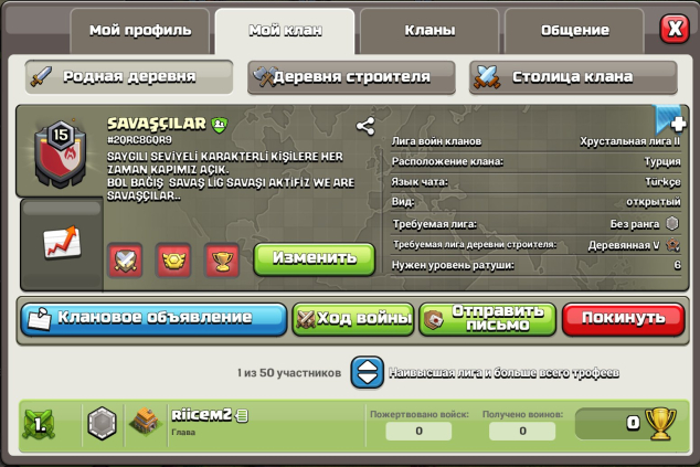 Краткое описание: 🟡SAVAŞÇILAR🟡КЛАН 15 ЛВЛ🟡СТОЛИЦА 10 ЛВЛ(2238)🟡КВ 69/54🟡ЛКВ ХРУСТАЛЬНАЯ 2🟡