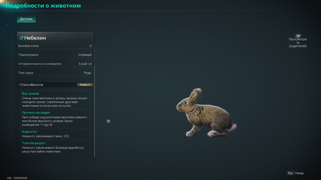 • ГЕНЫ: В наборе способностей присутствуют ценные гены для Сбора ресурсов «Вор орехов» и «Бодрость».