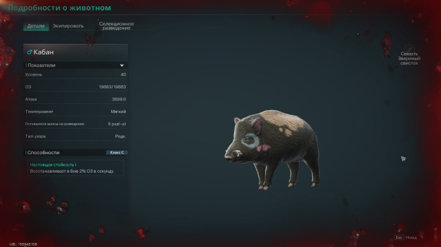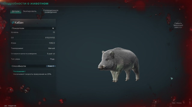 • ПОПЫТКИ: Оба питомца имеют свободные попытки разведения (5/5). Вы получаете два набора ценных генов для скрещивания с вашей самкой.