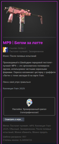 Краткое описание: MP9 | Бегом за латте с наклейкой