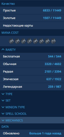 3 сервера🔥🖤👹 💀⚡418к пыли, 82к голды, 1 сум. уровень, 1 побед, 274 легендарных карт, 630 эпических карт, 1 золотых героев, 82340 золота, 418140 пыли