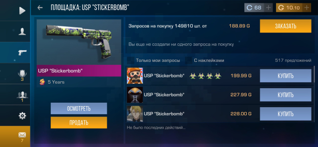 купил(а) Скины Counter-Strike: GO за 800 ₽