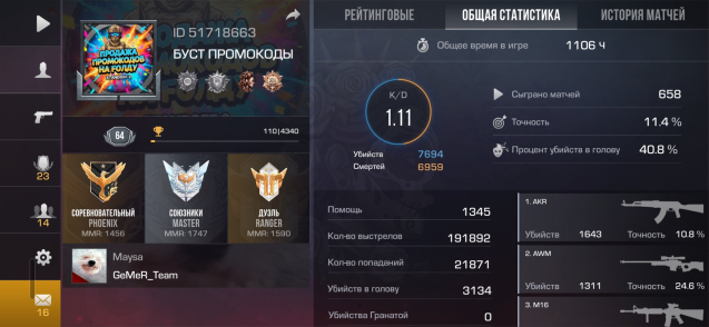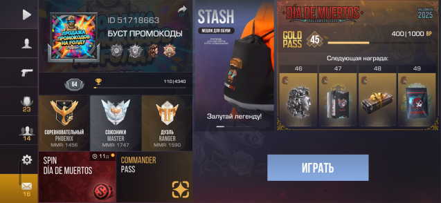 Звание: EliteКраткое описание: 😻😻ЖИРНЫЙ АККАУНТ НА 6К + ГОЛДЫ, КЛАНОМ И БАТЛ ПАССОМ