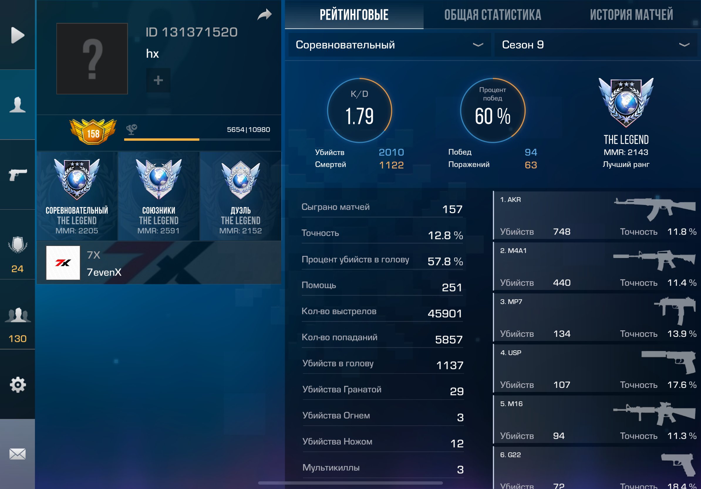 Звание: LegendКраткое описание: 6x legend 9-10 season 2500-2600 напы, мм 10 сезон рекорд 2581, кунай рипер