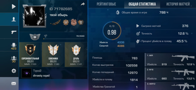 Звание: Gold llКраткое описание: аккаунт с ножом айди из 8 цифр имеется свой клан привязка Gmail ИМЕЕТСЯ НЕБОЛЬШОЙ ТОРГ