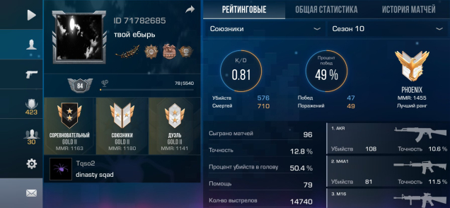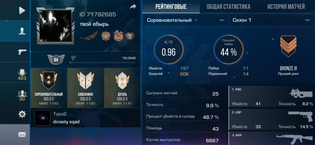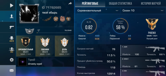 Подробное описание: аккаунт с 1 сезона звания этого сезона фениксы имеется нож и много скинов есть свой клан