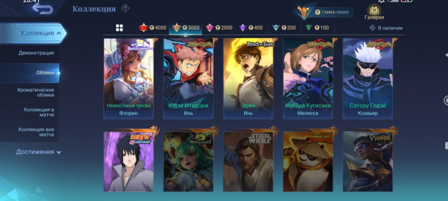 Краткое описание: На аккаунте есть много топовый скинов магическая битва и много других скинов