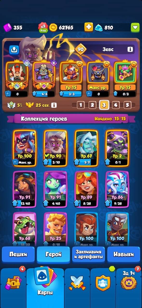 На аккаунте имеется 100 фортуна ,90 зевс ,67 некромант