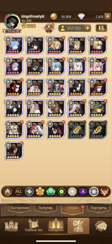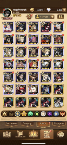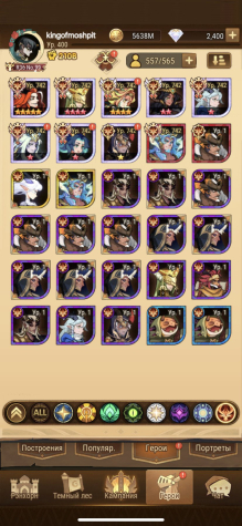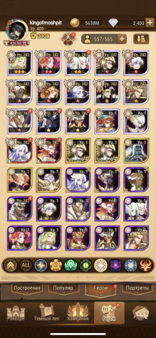 18 резонанс,71 глава(8 по серверу) все персонажи, почти все метовые пробуды и селипоги, охота топ 100, пм/кк 15-20%. Подробности уточняйте, вышлю актуальные любые скриншоты