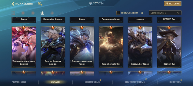 Много скинов для разных ролей на любой вкус и цвет. 35 легендарок, также 98 эпик и обычных скинов.