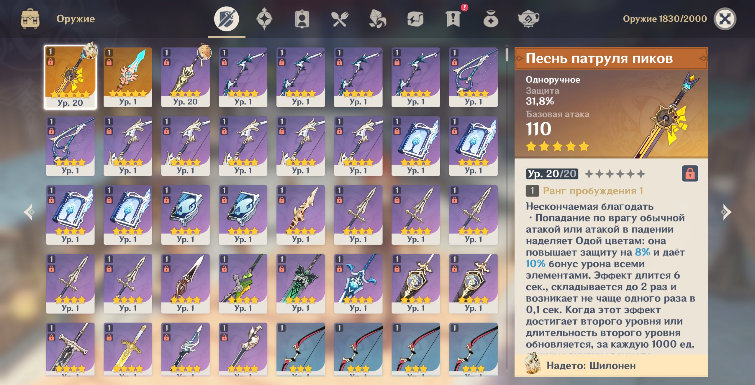 🌾5: оружие — Песнь патруля пиков, Небесная ось. ☆