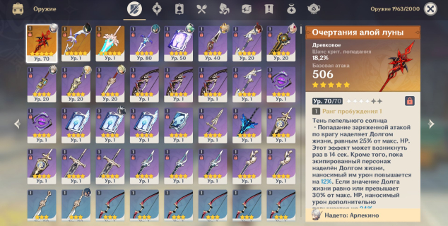 🎋5: оружие — Очертания алой луны, Лук амоса, Небесное величие. ☆