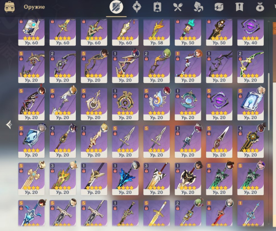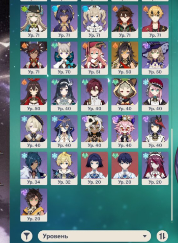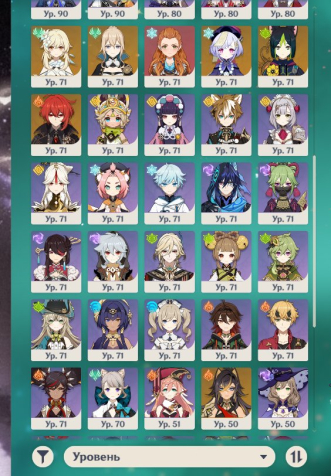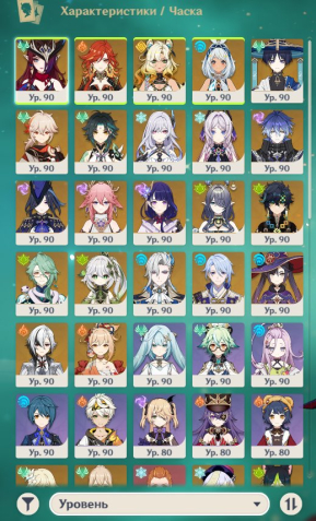 Бай Джу, Аято, Джинн С1, Ци Ци С2, Тигнари С3, Дилюк С1, Дэхья.