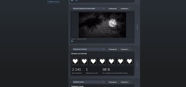 ✔️ Можно показать в Профиле: любимые игры, редкие достижения, предметы инвентаря, коллекции карточек.