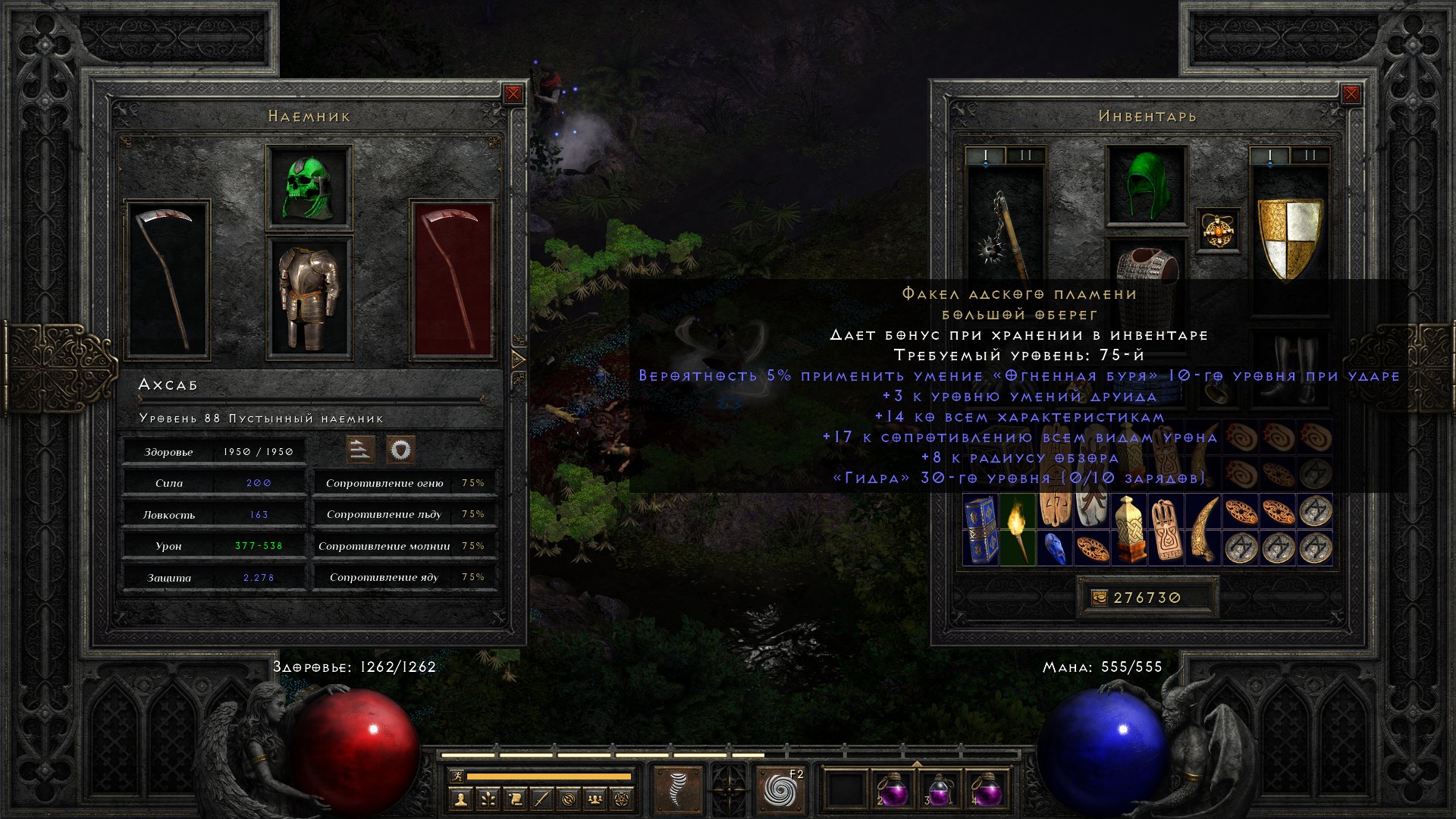🌟Персонаж имеет максимальные резисты (сопротивления всем видам стихий) +75%, кроме сопротивления огню, там 50%, на всех уровнях сложности, включая сложность АД.