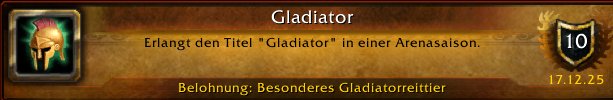 У персонажа есть BIS-снаряжение за прошлый сезон (12) + новый титул Gladiator + ездовое животное Gladiator.
