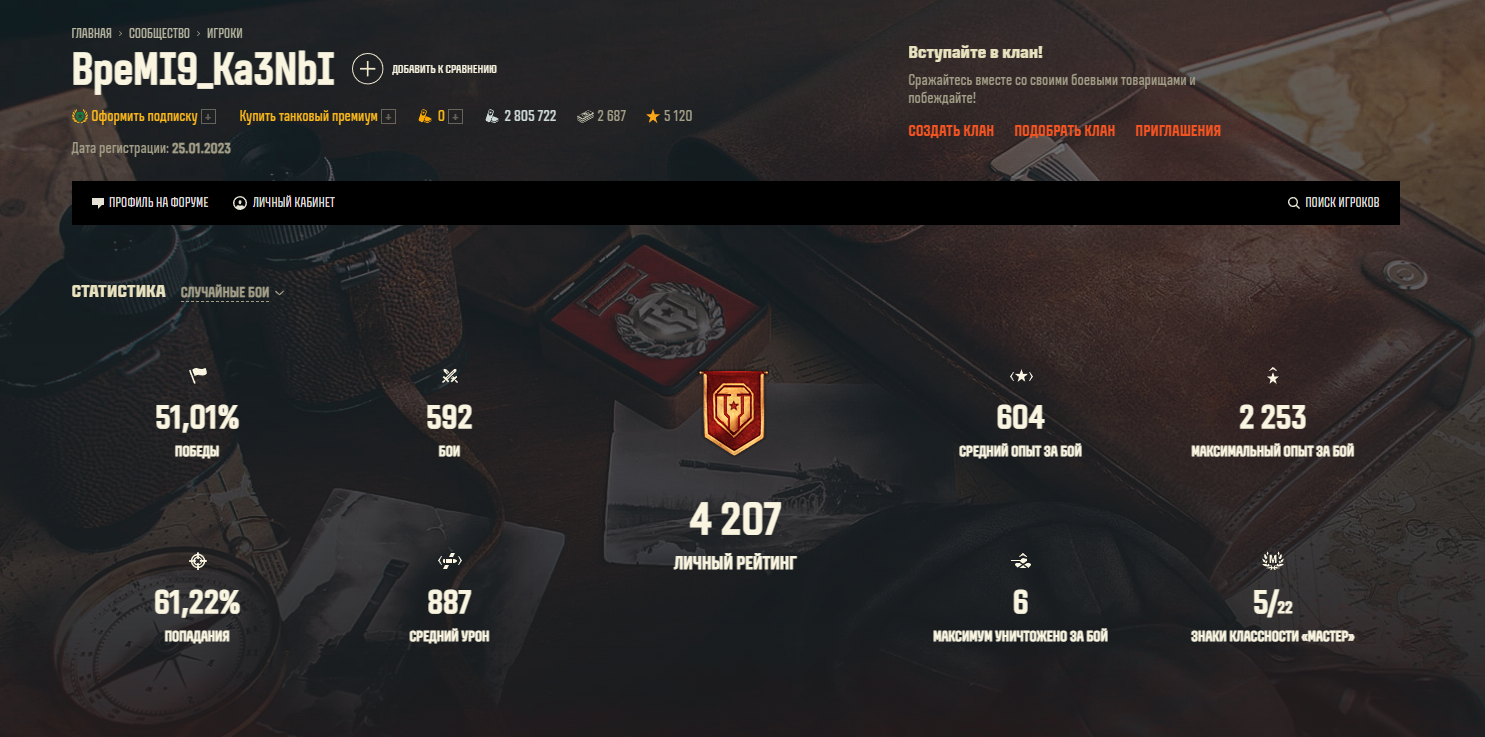Мир танков RU, 1 топ, 2 805 722 серебра, 0 голды