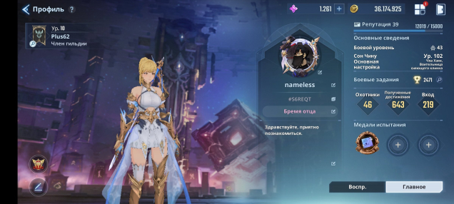 Краткое описание: Продам личный акк 102 лвл, репутация 40, БУ 42 1.138кк смотрите скриныПодробное описание: Есть все персонажи, 24 ssr оружий игрока (коса 7 звёзд, катана 5 звезд) почти на всех охотников свои оружие (пару охотников без оружия ).Если заинтересованы могу подробнее рассказать.