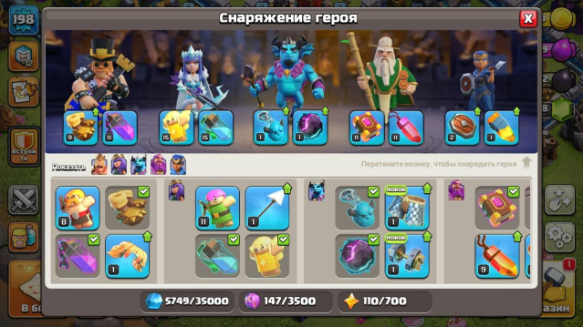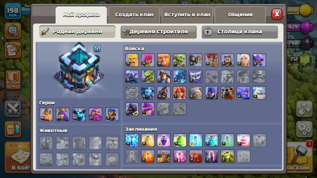 Уровень Ратуши: 13Краткое описание: 【 TH 13 】93%⚡ 198 LVL ⚡💎 700+ ГЕМОВ 💎【ГЕРОИ -🌐 56\67\35\6\7🌐】⚡