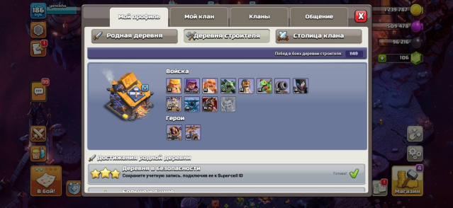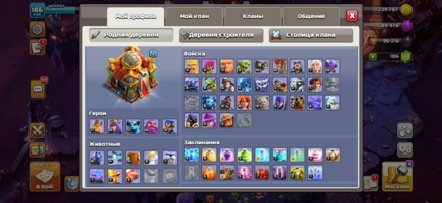 Уровень Ратуши: 16Краткое описание: 🟦💥【 TH 16 】⚡️186 LVL ⚡️💠СКИНЫ 💠【ГЕРОИ — 77/82/57/58/31】⚡️🟦💥