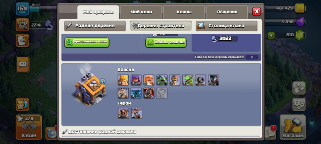 Уровень Ратуши: 15Краткое описание: ⚜️ 𝟏𝟓 𝗧𝗛 ⚜️ 👤 ГЕРОИ【𝟔𝟒:𝟕𝟓:𝟓𝟎:𝟓𝟎:𝟐𝟓】👤 🔮 𝟏𝟔𝟒 𝗟𝗩𝗟 🔮 【𝗳𝘂𝗹𝗹 𝟕𝟓%】