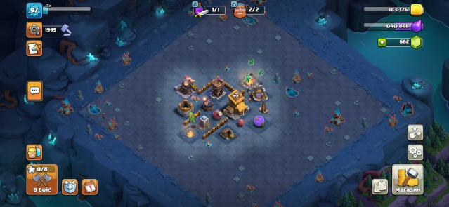Уровень Ратуши: 11Краткое описание: 🌪 11 TH🪐97 LVL 🔷 653 GEMS 💎5 Builders 🛠 Heroes (44/45/21/16)