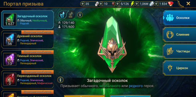 🔑 Хороший запас осколков