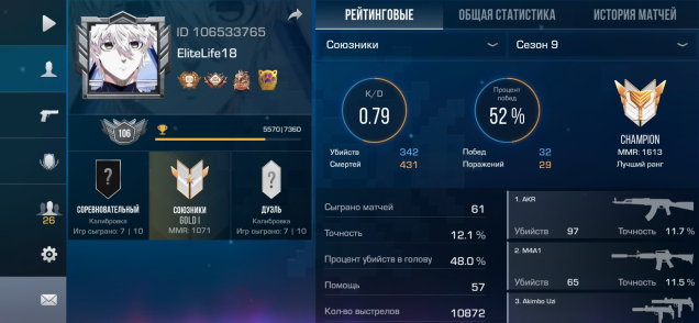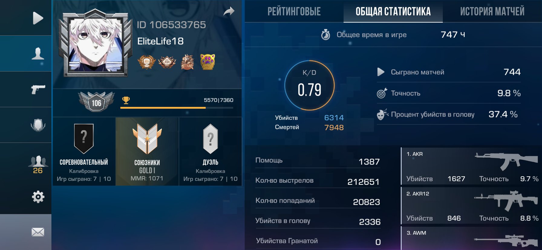 Звание: Gold lКраткое описание: 👺👺акк олдовый 👺👺 9 сезоне в союз был champion, 747 часов