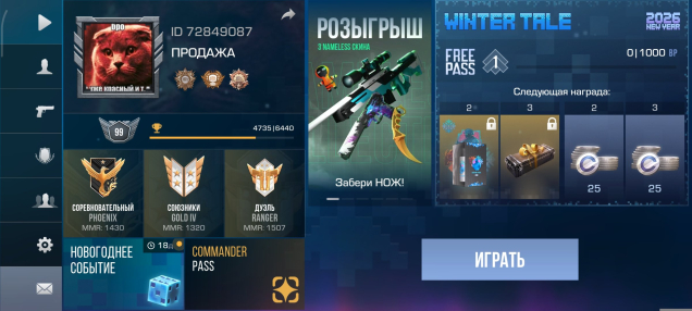Подробное описание: АККАУНТ с 1900 голды и 99лвл 493 наигранных часов, Союзники Голд 4, Соревы Феникс, Дуэли Рейнджер.