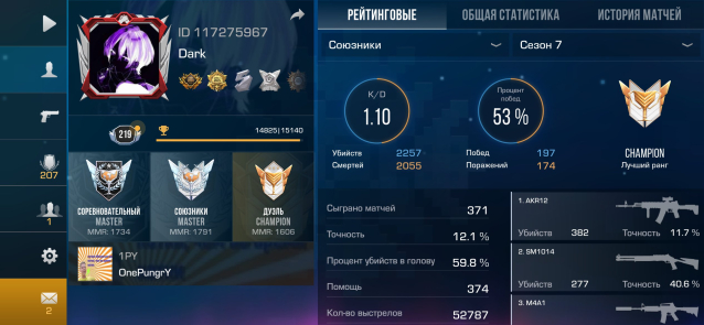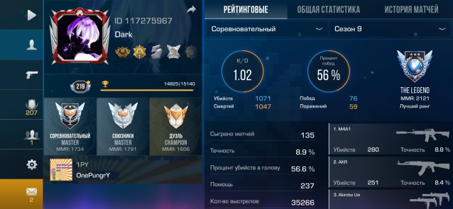 Звание: MasterКраткое описание: 💥🔴БЫЛИ ЛЕГИ🔴🥶1292+ Часов🥶🏅10 Медалей🏅🏆MEDAL «VETERAN 2024» ELITE🏆🟣БРЕЛКИ🟣🟡219 LVL🟡РАМКА