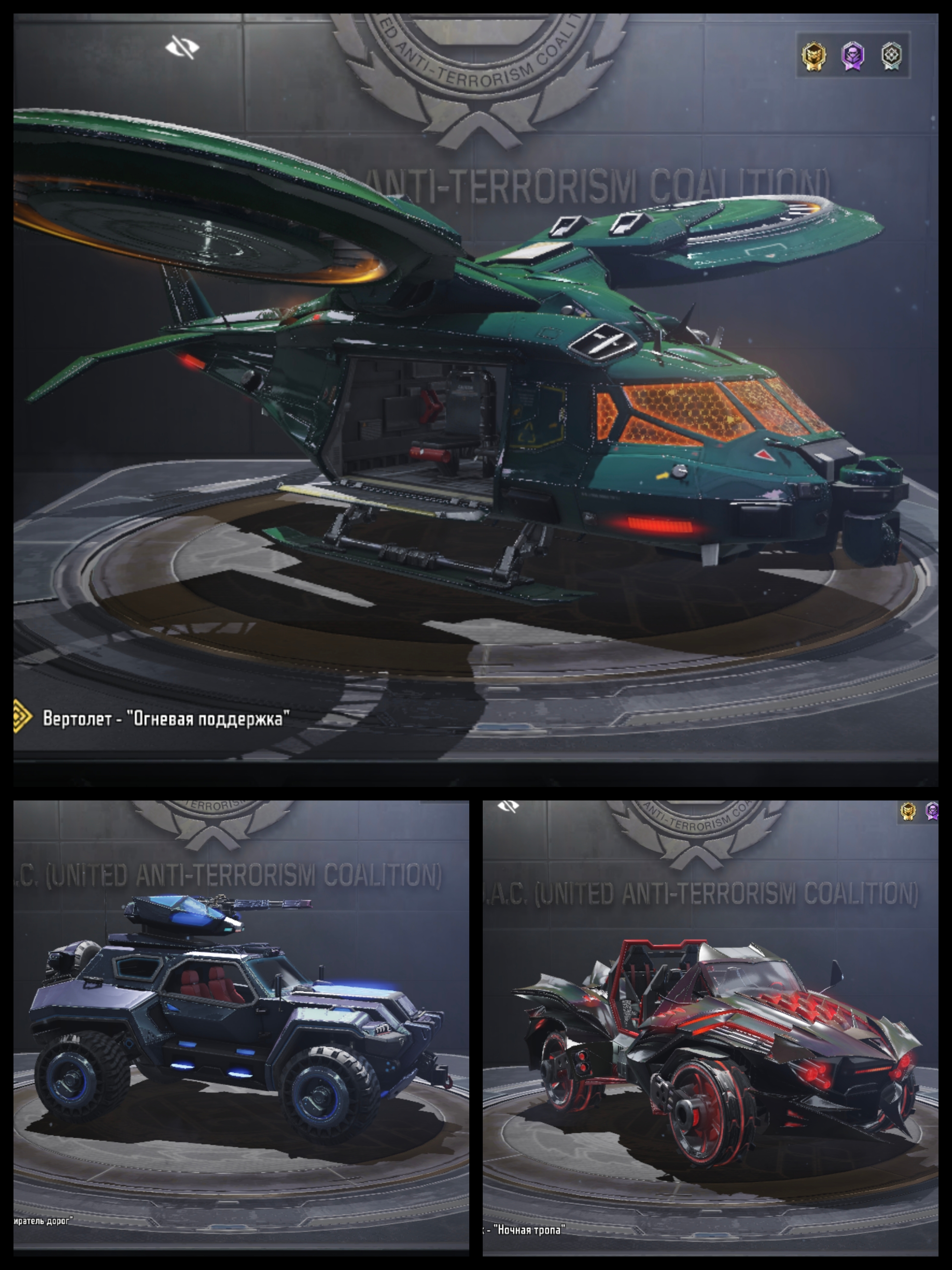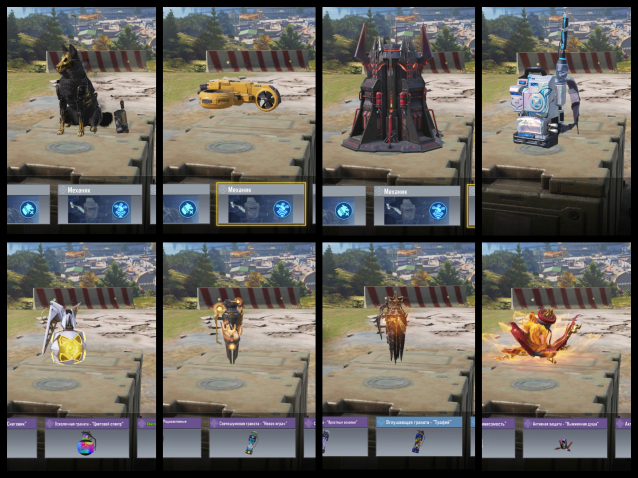 18 легендарного оружия(перечислять не буду, видно на фото), так же легендарные гранаты, парашют, крылья, техника и вертолёт,( на фото не всё что имеется)