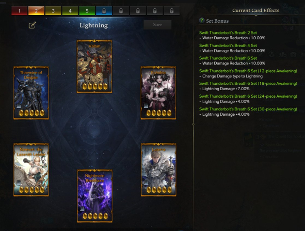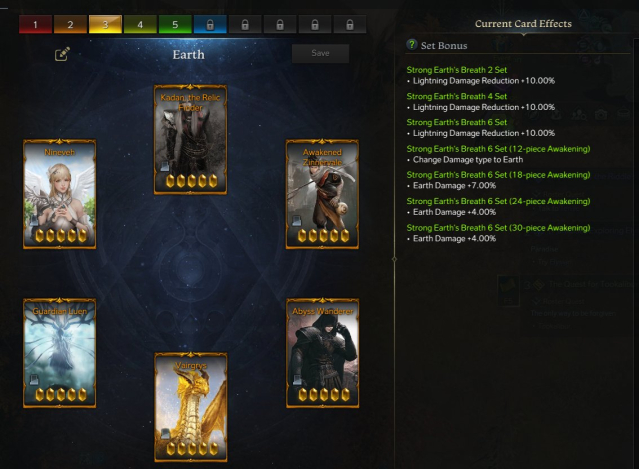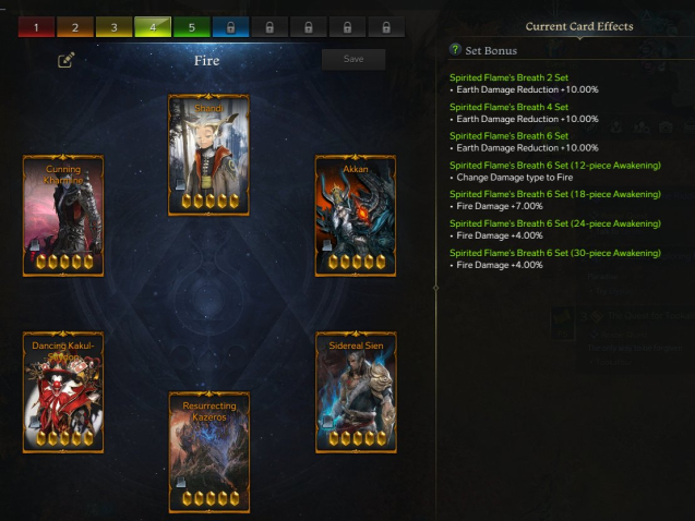 Earth, fire, and lightning DPS card sets fully completed