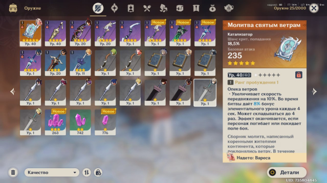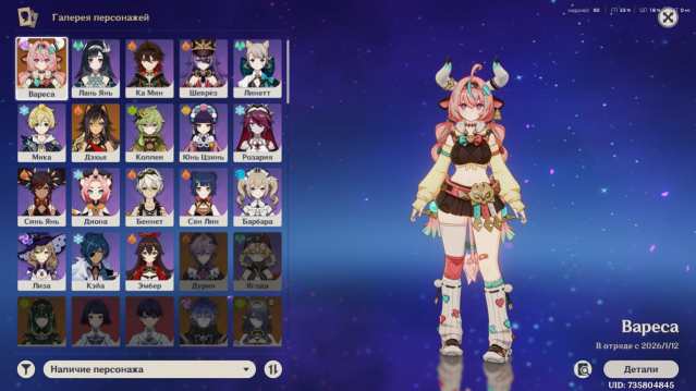 Стартовый аккаунт с Варесой, ранг 27, сюжет пройден только до Ли Юэ, карта не зачищена, открыто пару тп в Натлане. Также на аккаунте есть Дэхья и 5* книжка на кш
